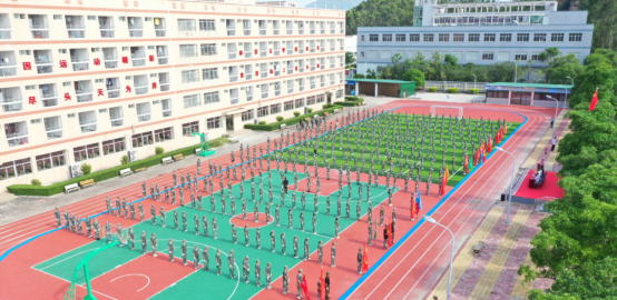 在雄壯的國歌聲中,全體領(lǐng)導(dǎo)、師生、教官莊嚴(yán)肅立,奏唱國歌。訓(xùn)練方隊整齊排列,經(jīng)熱血磨礪,歷汗水洗禮,同學(xué)們的眼神愈加堅定,腳步更加扎實。