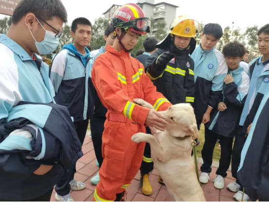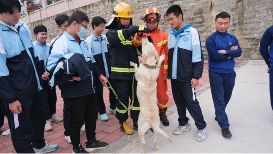 消防站工作人員向師生們詳細(xì)介紹了搜救犬訓(xùn)練基地的基本情況,特別介紹了消防搜救犬,包括種類要求、日常訓(xùn)練及其生活環(huán)境等。它們是消防員的“無言戰(zhàn)友”,救援現(xiàn)場的“特種兵”,是有特異功能的搜救英雄。隨后師生們觀摩了搜救犬的障礙、服從訓(xùn)練,走鋼絲、鉆洞、跳躍等,敏捷的身姿贏得師生們的一陣陣喝彩。最后,在訓(xùn)導(dǎo)員帶領(lǐng)下,與搜救犬進(jìn)行友好互動,親身體驗(yàn)了搜救犬訓(xùn)導(dǎo)員與搜救犬的工作日常。