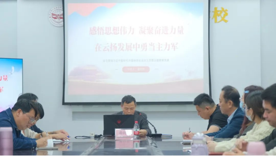 為深入學(xué)習(xí)貫徹習(xí)近平新時(shí)代中國(guó)特色社會(huì)主義思想,推動(dòng)主題教育走深走實(shí),進(jìn)一步引導(dǎo)學(xué)校全體黨員堅(jiān)定理想信念、強(qiáng)化黨性修養(yǎng)、提升能力素質(zhì),12月12日下午,我校黨支部潘向東書記為我校支部全體黨員及入黨積極分子開(kāi)展以《感悟思想偉力 凝聚奮進(jìn)力量 在云揚(yáng)發(fā)展中勇當(dāng)主力軍》為主題的專題黨課,學(xué)校團(tuán)員教師及學(xué)生列席參加。