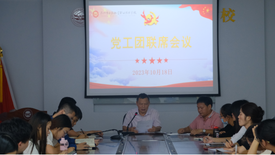 在縣、鎮(zhèn)工會領(lǐng)導(dǎo)及校內(nèi)黨工領(lǐng)導(dǎo)的關(guān)心指導(dǎo)與重視下,我校工會各項(xiàng)工作有條不紊地開展著。10月18日下午,我校召開黨工團(tuán)第一次聯(lián)席會議,學(xué)校黨支部潘向東書記對學(xué)習(xí)貫徹習(xí)近平新時代中國特色社會主義思想主題教育工作做出具體部署和要求,副校長、工會主席陳炳耀深入解讀了工會的職能,會議明確了黨工團(tuán)組織是確保學(xué)校前進(jìn)方向的重要組織。
