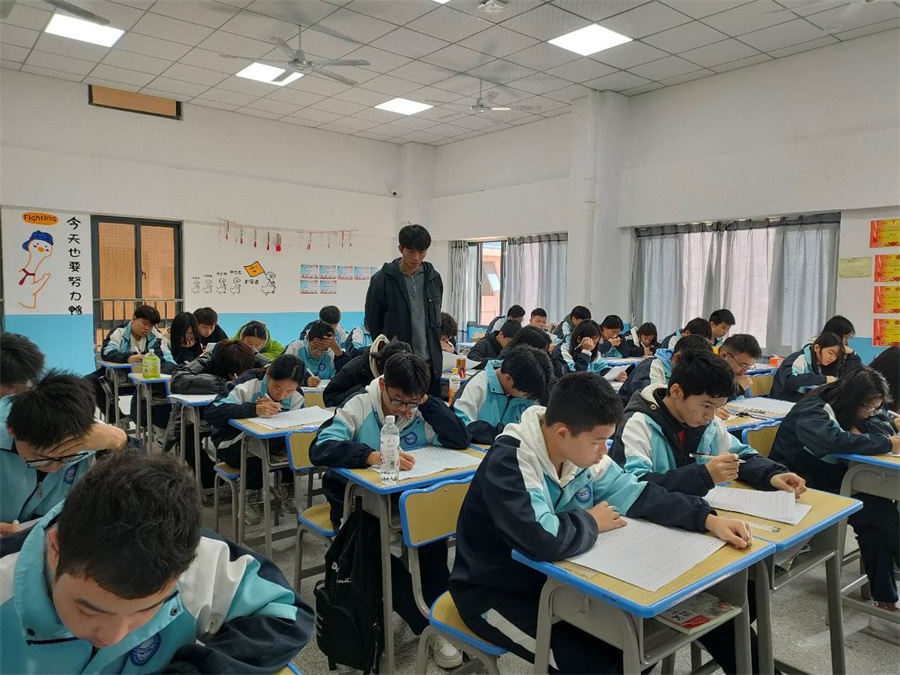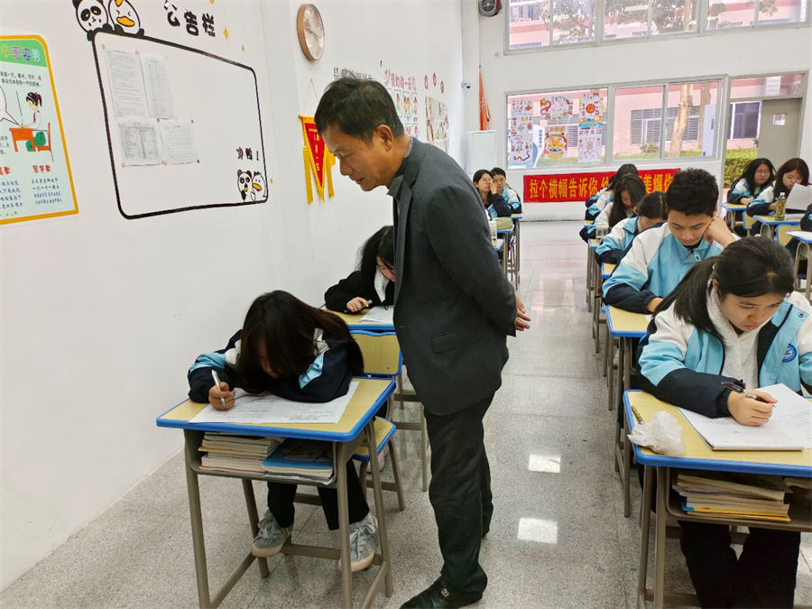 嚴(yán)管都是厚愛??紙鰞?nèi),監(jiān)考教師高度負(fù)責(zé),認(rèn)真履行監(jiān)考職責(zé)。慎終如始,則無敗事??荚嚳颇慷?,考場分布廣,保障難度大。為能及時(shí)解決考場內(nèi)可能出現(xiàn)的各種問題,保障考試順利進(jìn)行,并為全體考生鼓勁加油。鄭乃吉校長、陳炳耀副校長、許碧奎副校長以及相關(guān)考務(wù)人員深入考場一線,積極參與巡考,率先垂范,營造“和諧嚴(yán)肅”、“考堂神圣”的考試環(huán)境。