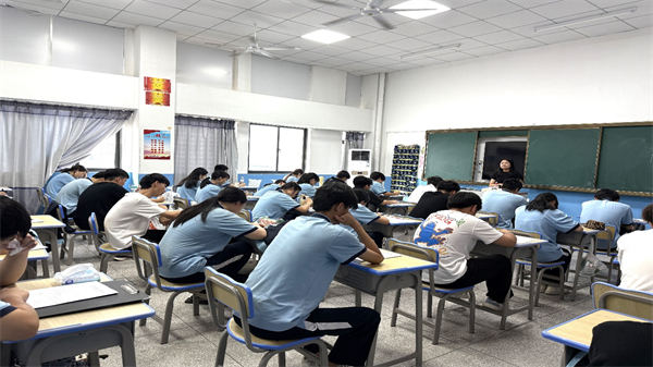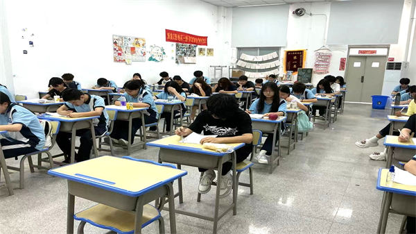 考試單人單桌,監(jiān)考老師嚴格執(zhí)行流程,營造良好考試環(huán)境,同學們專注答題。