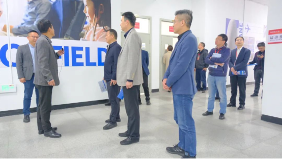 視察組一行在郭守強(qiáng)理事長及鄭乃吉校長的帶領(lǐng)下參觀了我校飛機(jī)維修實訓(xùn)室、機(jī)電一體化實訓(xùn)室、眼視光實訓(xùn)室、無人機(jī)實訓(xùn)室等各專業(yè)實訓(xùn)室及航空研學(xué)館,并實地察看我校產(chǎn)教融合中心的建設(shè)進(jìn)度。