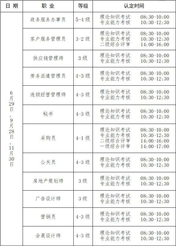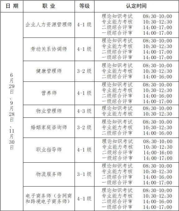 職業(yè)技能等級(jí)統(tǒng)一認(rèn)定時(shí)間安排: