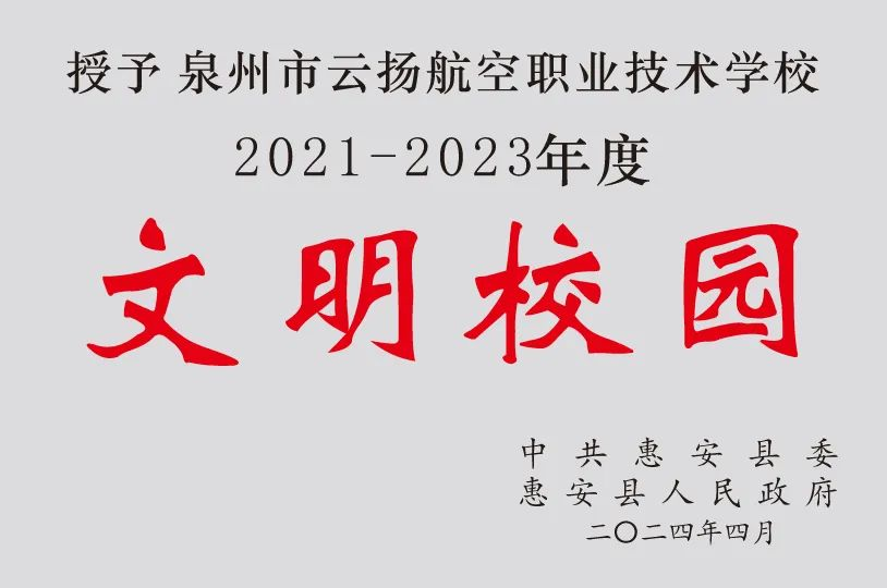 初心如磐,文明如歌,承澤致遠(yuǎn),砥礪奮發(fā)!泉州市云揚(yáng)航空職業(yè)技術(shù)學(xué)校將以此次榮獲“文明校園”榮譽(yù)稱號(hào)為契機(jī),不忘立德樹人初心,牢記為黨育人、為國育才使命,持續(xù)奮力譜寫我校精神文明建設(shè)新篇章,做有溫度的教育,讓文明之花在云揚(yáng)繼續(xù)綻放!