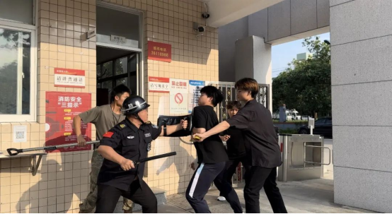 演練伊始,按照預(yù)定方案,模擬不法分子闖入校園這一緊急情況。校園保安迅速出動,與“歹徒”展開周旋,同時上報值班人員;校園防暴隊聞令迅速出動,按照平時訓(xùn)練流程對暴恐分子開展圍堵、抓捕;各安全員迅速組織學(xué)生撤離到安全區(qū)域,屈伸躲藏,緊閉門窗;心理隊對驚恐學(xué)生進行心理安撫。演練過程中,師生嚴(yán)格遵守現(xiàn)場指令,有序疏散,展現(xiàn)出良好的應(yīng)急反應(yīng)能力。演練結(jié)束后,學(xué)工處組織對演練中出現(xiàn)的問題進行了總結(jié)反思,結(jié)合實際對方案預(yù)案進一步修訂完善。