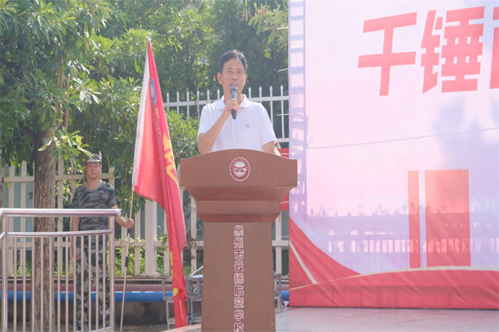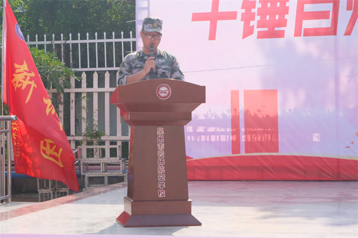 軍訓(xùn)團(tuán)劉超團(tuán)長作動(dòng)員講話,他表示全體教官將嚴(yán)格按照軍訓(xùn)計(jì)劃,科學(xué)施訓(xùn),文明施訓(xùn),確保軍訓(xùn)任務(wù)的圓滿完成。同時(shí),也希望同學(xué)們能夠積極配合,嚴(yán)格要求自己,認(rèn)真訓(xùn)練,發(fā)揚(yáng)不怕苦、不怕累的精神,培養(yǎng)集體榮譽(yù)感,以優(yōu)異的成績完成本次軍訓(xùn)。