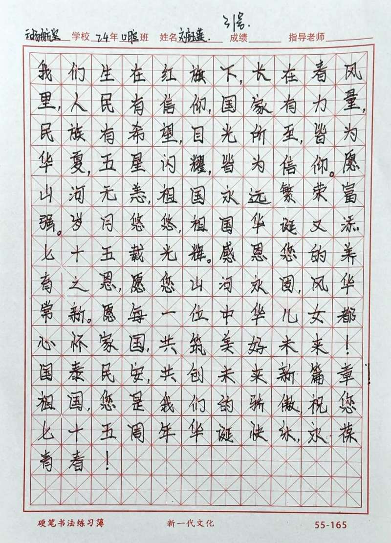 這些作品不僅展現(xiàn)了學(xué)生們的藝術(shù)修養(yǎng),更深刻傳達(dá)了他們對(duì)祖國(guó)的深情厚意和美好祝愿。在這樣一個(gè)全民共慶的時(shí)刻,云揚(yáng)的學(xué)子們以他們的書畫創(chuàng)作,向祖國(guó)母親獻(xiàn)上了最真誠(chéng)的心意。讓我們一同在這場(chǎng)云端的藝術(shù)盛會(huì)上,領(lǐng)略學(xué)生們的愛國(guó)熱情和藝術(shù)魅力,共同祈愿?jìng)ゴ蟮淖鎳?guó)繁榮昌盛,未來更加輝煌!