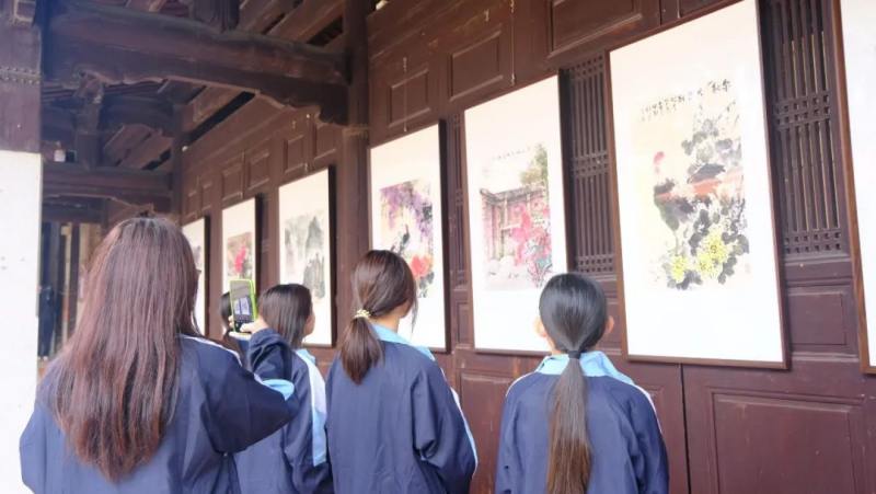 活動(dòng)當(dāng)天,云揚(yáng)學(xué)子身著校服,滿懷藝術(shù)熱情,有序步入展廳。陳維揚(yáng)先生精選的80幅國(guó)畫作品,筆墨靈動(dòng),意境深遠(yuǎn),即刻吸引眾人。學(xué)子們不僅學(xué)習(xí)了國(guó)畫技法與精妙構(gòu)圖,更深刻感悟到作品背后的歷史與文化,激發(fā)了他們對(duì)傳統(tǒng)文化的熱愛(ài)與傳承使命感。