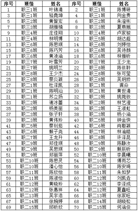 根據(jù)《中國共產(chǎn)主義青年團(tuán)章程》有關(guān)規(guī)定,按照《共青團(tuán)中央關(guān)于印發(fā)<中國共產(chǎn)主義青年團(tuán)發(fā)展團(tuán)員工作細(xì)則>的通知》(中青發(fā)〔2023〕13號)、《共青團(tuán)中央印發(fā)<關(guān)于新時代新征程加強(qiáng)和改進(jìn)團(tuán)員隊(duì)伍建設(shè)工作的意見>的通知》(中青發(fā)〔2023〕14號)和團(tuán)縣委《共青團(tuán)惠安縣委關(guān)于高質(zhì)量做好2024年下半年全縣學(xué)校領(lǐng)域發(fā)展團(tuán)員工作的通知》(團(tuán)惠委〔2024〕21號)文件要求。經(jīng)個人書面申請、班級推薦、積分入團(tuán)、團(tuán)校培養(yǎng)、結(jié)業(yè)考核和學(xué)校團(tuán)支部審核等環(huán)節(jié),擬確定以下70名學(xué)生為2024年下半年團(tuán)員發(fā)展對象,現(xiàn)將名單進(jìn)行公示,公示期為2024年11月11日至11月15日。
