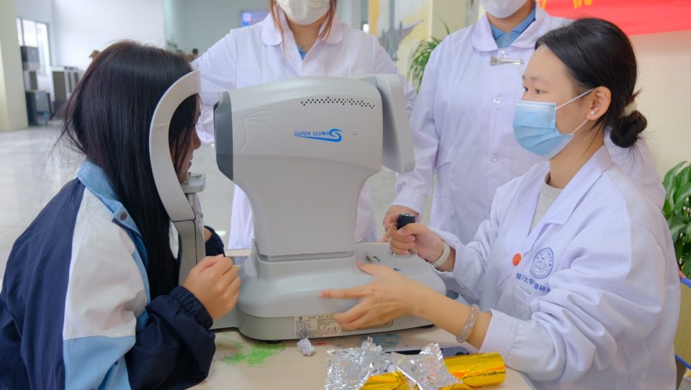 協(xié)助做好師生生視力篩查,是本次見(jiàn)習(xí)的重要任務(wù)之一,學(xué)生們?cè)诶蠋煹闹笇?dǎo)下,分組開(kāi)展視力與屈光度篩查、角膜曲率與眼軸測(cè)量,他們認(rèn)真負(fù)責(zé)的身影在視力篩查現(xiàn)場(chǎng)穿梭,不放過(guò)任何一個(gè)細(xì)節(jié)。每當(dāng)特殊或者疑難病例出現(xiàn),學(xué)生們態(tài)度誠(chéng)懇地向帶隊(duì)老師請(qǐng)教,展現(xiàn)出對(duì)專業(yè)知識(shí)的熱切追求。