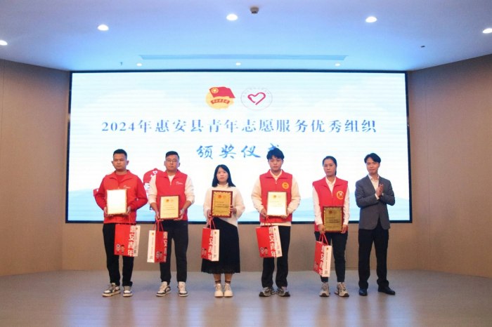 為引導和激勵廣大青年積極投身志愿服務,擴大志愿服務社會影響力,12月4日,惠安團縣委與縣青年志愿者協(xié)會聯(lián)合舉辦了青年志愿服務表彰儀式。儀式上,與會領導分別為2024年惠安縣青年志愿服務優(yōu)秀個人與組織、星級青年志愿者頒獎。我校青年志愿者服務隊獲評2024年“惠安縣青年志愿服務優(yōu)秀組織”榮譽稱號。