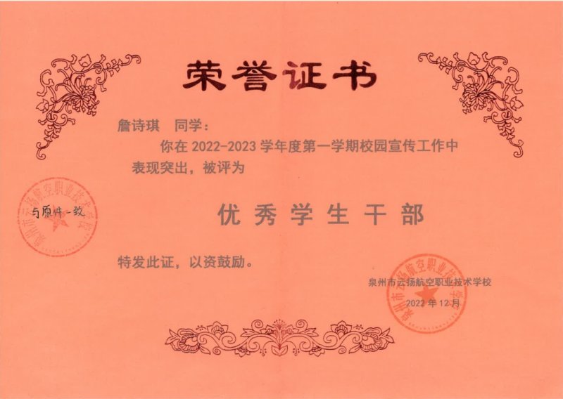2022-2023學(xué)年優(yōu)秀學(xué)生干部