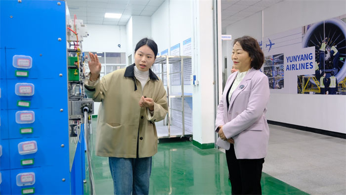 程書記一行首先深入我校港灣校區(qū),聽取了有關(guān)學(xué)?;靖艣r、辦學(xué)歷程和辦學(xué)特色的介紹,隨后實地參觀考察了我校黃塘校區(qū)飛機維修、機電一體化等各專業(yè)實訓(xùn)室及航空研學(xué)館,對我校工學(xué)交替式的“產(chǎn)、學(xué)、研、用”立體教學(xué)模式、先進的辦學(xué)環(huán)境和實訓(xùn)條件表示贊賞。