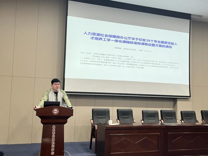 泉州技師學(xué)院教務(wù)科副科長(zhǎng)吳文理,圍繞“工學(xué)一體化”建設(shè)這一核心主題,對(duì)工學(xué)一體化培養(yǎng)模式的主要任務(wù)、發(fā)展歷程、一體化課程改革的本質(zhì)與內(nèi)涵,以及工學(xué)一體化的理論與實(shí)踐等方面進(jìn)行了全面而深入的剖析,并通過(guò)多個(gè)維度的細(xì)致講解,揭示了如何超越傳統(tǒng)教學(xué)的局限,實(shí)現(xiàn)理論與實(shí)踐的深度融合。通過(guò)吳科長(zhǎng)的闡述,與會(huì)人員對(duì)工學(xué)一體化教學(xué)模式有了更為清晰和深刻的理解,對(duì)如何突破傳統(tǒng)教學(xué)的限制,達(dá)成理論與實(shí)踐的緊密結(jié)合有了深刻的認(rèn)識(shí)。