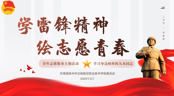 2025年3月5日,正值第62個“學雷鋒紀念日”與第25個“中國青年志愿者服務日”之際,為深入學習和貫徹黨的二十大精神,積極弘揚“奉獻、友愛、互助、進步”的志愿精神,我校特此舉辦了以“學雷鋒精神·繪志愿青春”為主題的團日活動。本次活動形式多樣,包括專題學習講座與感人故事宣講等環(huán)節(jié),旨在向全校團員青年及青年志愿者生動傳達雷鋒同志的光輝事跡及我們身邊的時代楷?!惽匪镜南冗M典范,讓志愿精神的璀璨光芒照亮校園每一個角落。
