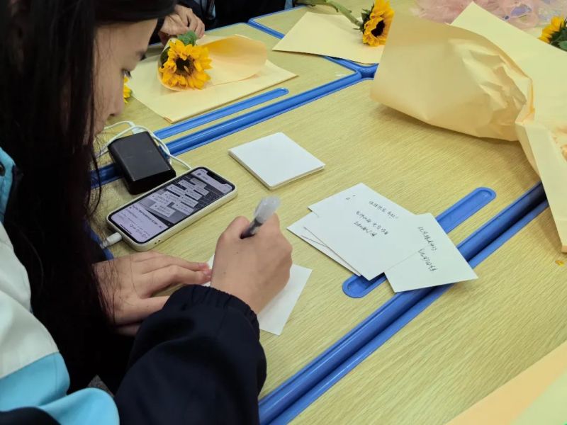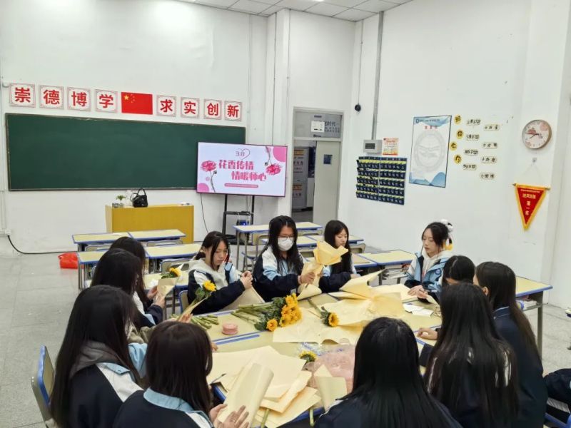 為慶祝這一屬于“女神”們的節(jié)日,學(xué)校團(tuán)委特別組織了“花香傳情,情暖師心”感恩活動。學(xué)生們滿懷深情,有的揮毫潑墨書寫祝福卡片,有的精心勾勒繪制裝飾畫,還有的巧手制作精美花束,將創(chuàng)意與愛融入每一件獨(dú)一無二的禮物中。3月7日,學(xué)生們利用課間操時(shí)間親手將包裝精美的鮮花獻(xiàn)給女教師,每一束花都承載著深深的敬意與美好的祝愿。這份真摯與用心深深觸動了老師們的心弦,她們的臉上綻放出幸福的笑容。此次活動不僅營造了溫馨和諧的校園氛圍,更是一次心靈的觸碰與情感的交融。