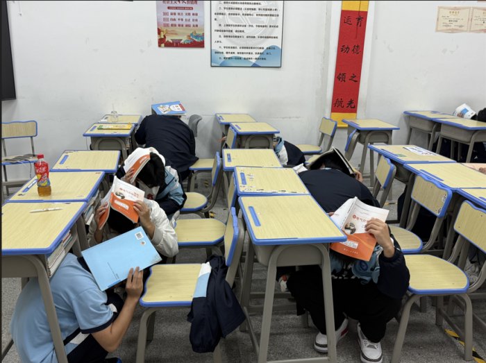 隨著警報響起,演練正式開始。全體師生迅速進入應(yīng)急狀態(tài),學(xué)生們在老師的指導(dǎo)下立即蹲下,躲在課桌下方或墻角,用書本或雙手護住頭部,進行緊急避險。