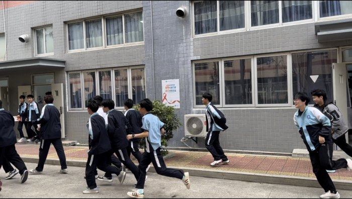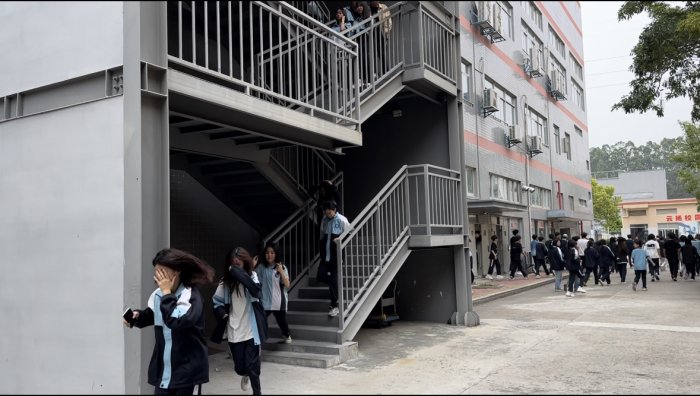 隨后,全體師生按照預(yù)定疏散路線,快速有序地向操場安全區(qū)域撤離。各樓層疏導(dǎo)教師迅速到位,指引學(xué)生保持安全距離,避免擁擠和推搡。整個疏散過程緊張有序。
