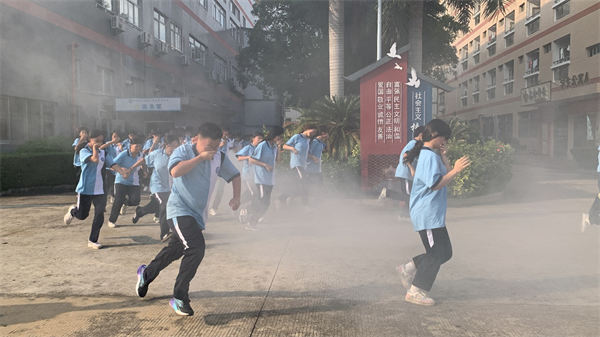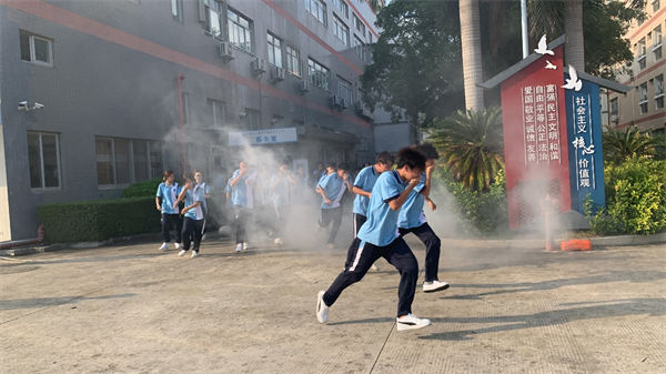 下午3時(shí),消防警報(bào)劃破長(zhǎng)空,橙色煙霧模擬火場(chǎng)環(huán)境迅速?gòu)浡堑?。在軍?xùn)教官和學(xué)工處老師的聯(lián)合組織下,同學(xué)們迅速用濕毛巾捂住口鼻,低姿彎腰沿墻前行,按照預(yù)定疏散路線快速向開(kāi)闊地帶轉(zhuǎn)移。整個(gè)過(guò)程中,同學(xué)們沉著冷靜、動(dòng)作規(guī)范,快速有序疏散,安全抵達(dá)集結(jié)區(qū)域,展現(xiàn)出良好的紀(jì)律意識(shí)和協(xié)作能力。