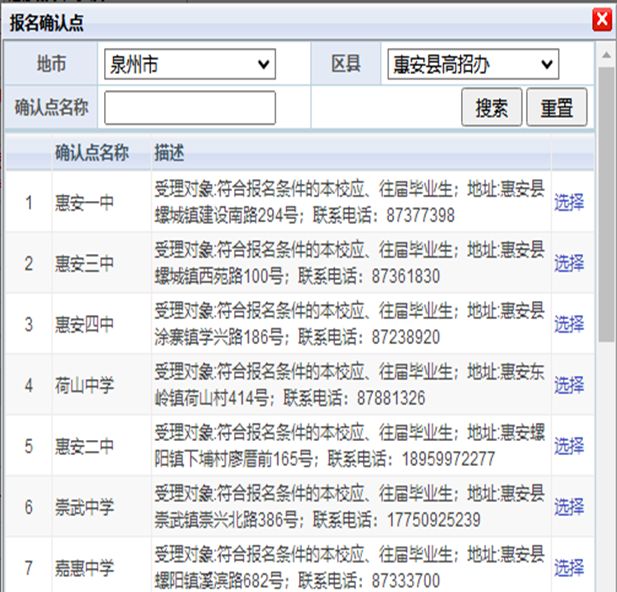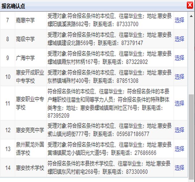01:報(bào)名確認(rèn)點(diǎn):惠安縣技術(shù)學(xué)校