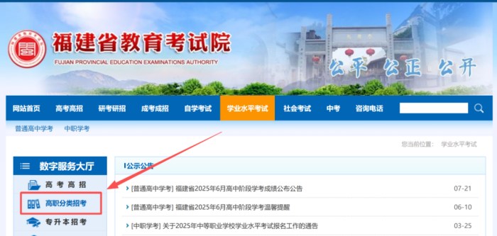(2)點(diǎn)擊右側(cè):數(shù)字服務(wù)大廳--高職分類招考