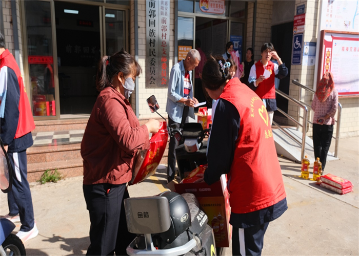 隨著活動(dòng)推進(jìn),慰問(wèn)隊(duì)伍開(kāi)啟了入戶(hù)關(guān)懷之旅。在前郭回族村黨總支和老協(xié)會(huì)代表的陪同下,我校師生代表手提慰問(wèn)品,逐一叩響高齡老人的家門(mén)。門(mén)內(nèi),是跨越代際的親切交談——志愿者們耐心聆聽(tīng)老人們講述歲月故事,認(rèn)真記錄他們的生活需求與健康困擾;門(mén)外,是深秋里最溫暖的牽掛。臨別時(shí)一聲聲“祝您安康”,讓重陽(yáng)的溫情在街巷間靜靜流淌。