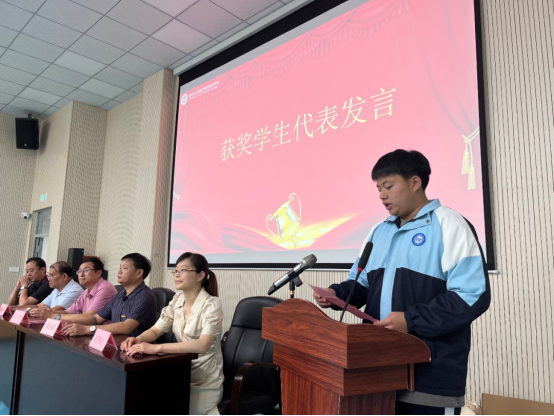 陳子君作為學生代表分享了一年以來的心得體會。他說道剛入學時,自己還是一個性格內向的孩子,如今,在老師的指導下,已經成為一名合格的學生干部。他總結道,之所以能獲得今天的榮譽,得益于學校先進的辦學理念、老師的辛勤付出及自身的積極努力。他表示在今后的日子里,一定在奮斗的道路上,做的更好,走的更遠。