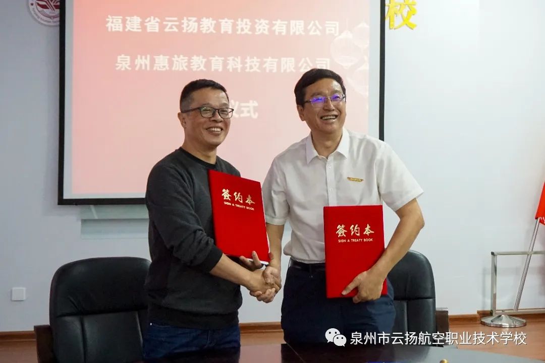 2022年11月1日上午,福建省云揚(yáng)教育投資有限公司與泉州惠旅教育科技有限公司合作簽約儀式在泉州市云揚(yáng)航空職業(yè)技術(shù)學(xué)校舉行。泉州市云揚(yáng)航空職業(yè)技術(shù)學(xué)校郭守強(qiáng)理事長、遲巖校長出席儀式并講話,惠安縣文旅集團(tuán)曾云暉主任及泉州惠旅教育科技有限公司相關(guān)負(fù)責(zé)人出席簽約儀式。