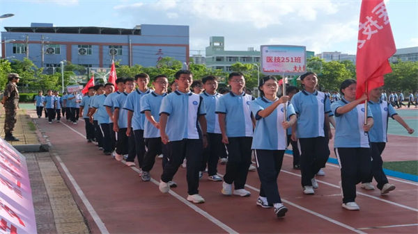 校領(lǐng)導(dǎo)、教官、全體教職工及2025級(jí)同學(xué)齊聚訓(xùn)練場(chǎng)