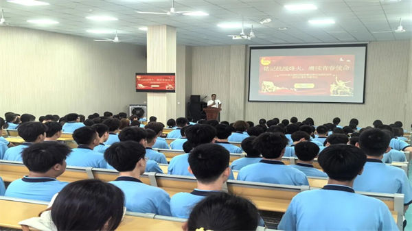 校團(tuán)委副書記劉超老師以退伍軍人身份,為新生帶來了一堂生動的國防教育課?!翱箲?zhàn)精神從未過時,它早已融入我們每個人的責(zé)任與擔(dān)當(dāng)之中?!眲⒗蠋熃Y(jié)合自身軍旅經(jīng)歷,通過部隊訓(xùn)練、執(zhí)行任務(wù)等真實(shí)故事,將“不畏強(qiáng)暴、血戰(zhàn)到底”的抗戰(zhàn)精神與當(dāng)代青年的技能成才使命相銜接。