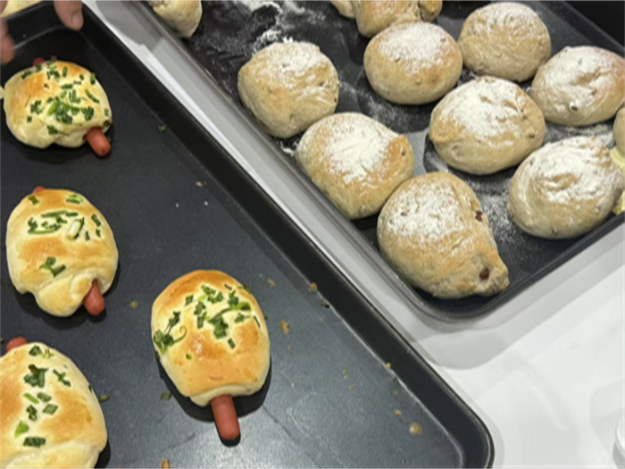 揉面的過程中,大家跟隨著老師的指導(dǎo),感受著面團(tuán)在手中的變化;發(fā)酵時(shí),又滿懷期待地守在旁邊,觀察著面團(tuán)的膨脹。當(dāng)面包放入烤箱,隨著時(shí)間一分一秒地過去,整個(gè)實(shí)訓(xùn)室彌漫著誘人的香氣,每個(gè)人的臉上都洋溢著興奮與喜悅。