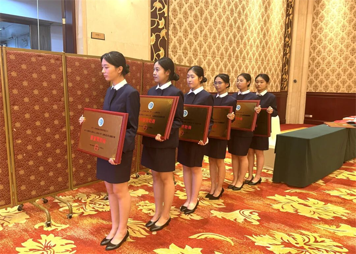 典禮現(xiàn)場(chǎng),我校禮儀隊(duì)學(xué)子化身“形象大使”,以專業(yè)得體的服務(wù)成為一道亮麗風(fēng)景。從簽到處溫暖親切的問候,到引導(dǎo)嘉賓落座時(shí)的細(xì)致周到;從頒獎(jiǎng)環(huán)節(jié)中規(guī)范流暢的托舉動(dòng)作,到全程保持的優(yōu)雅儀態(tài)——她們用微笑傳遞溫度,用專業(yè)贏得贊譽(yù),展現(xiàn)了云揚(yáng)學(xué)子的良好素養(yǎng)。