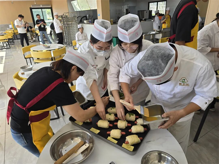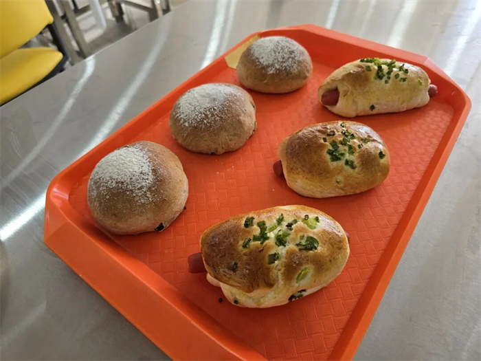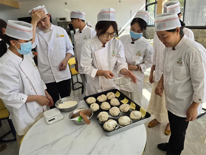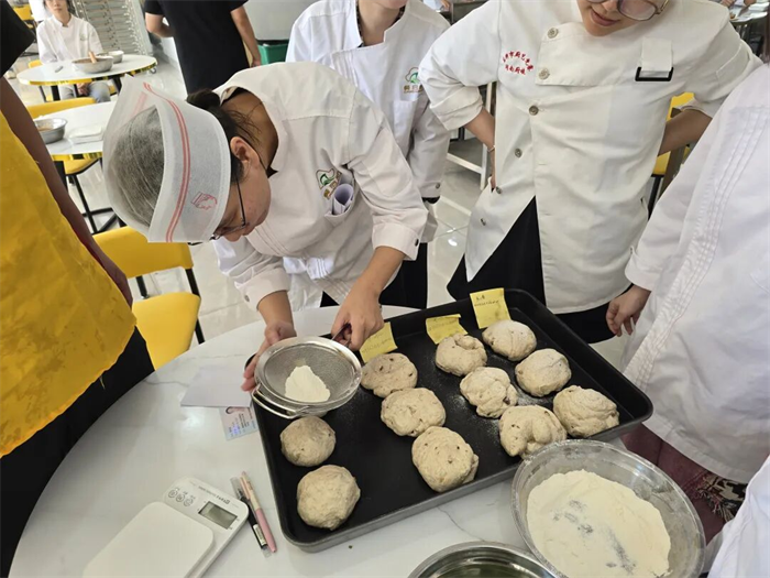 培訓(xùn)中,專業(yè)教師圍繞面包烘焙全流程,系統(tǒng)講授了面粉種類與特性、酵母作用原理、發(fā)酵環(huán)境控制、烘焙時間把握等核心知識,講解深入淺出、細致到位。教職工們學(xué)習(xí)熱情高漲,在揉面、發(fā)酵、整形等實操環(huán)節(jié)反復(fù)練習(xí)、用心揣摩,逐步掌握了面包制作的關(guān)鍵技能。從最初的“烘焙小白”到能夠熟練制作多種經(jīng)典面包,大家的進步有目共睹,也為迎接考核打下堅實基礎(chǔ)。
