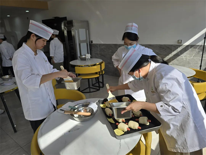 考核現(xiàn)場氣氛既熱烈又緊張。教職工們統(tǒng)一身著廚師服,精神抖擻地步入實訓(xùn)室。考核指令一下,大家迅速進入狀態(tài)。有的老師揉面動作行云流水,面團在指尖自如變換;有的老師細心觀察面團發(fā)酵狀態(tài),眼神中滿是對完美成品的追求。隨著烤箱中飄散出陣陣誘人香氣,大家都在期待作品出爐的那一刻——那香氣,正是對他們努力最好的回報。